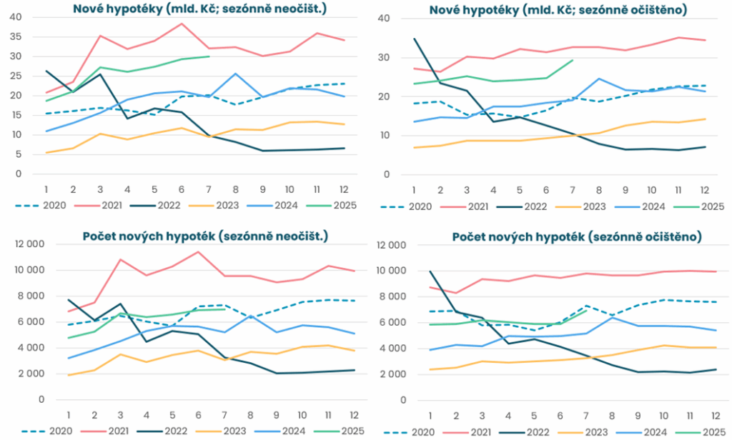 The volume of new mortgages reached CZK 30 billion in July, while interest rates continued to edge lower.
