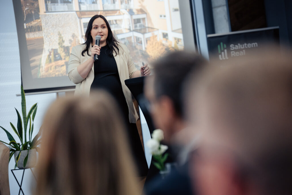 Druhá část programu se zaměřila na konkrétní nástroje a služby. Martin Dudjak a Milan Kleban představili Fond kvalifikovaných investorů od Salutem Fund, který umožňuje investovat do širšího portfolia projektů a rozložit tak riziko. Pro řadu klientů jde o přirozené doplnění k přímému vlastnictví nemovitostí a cestu, jak své investice lépe vyvážit.